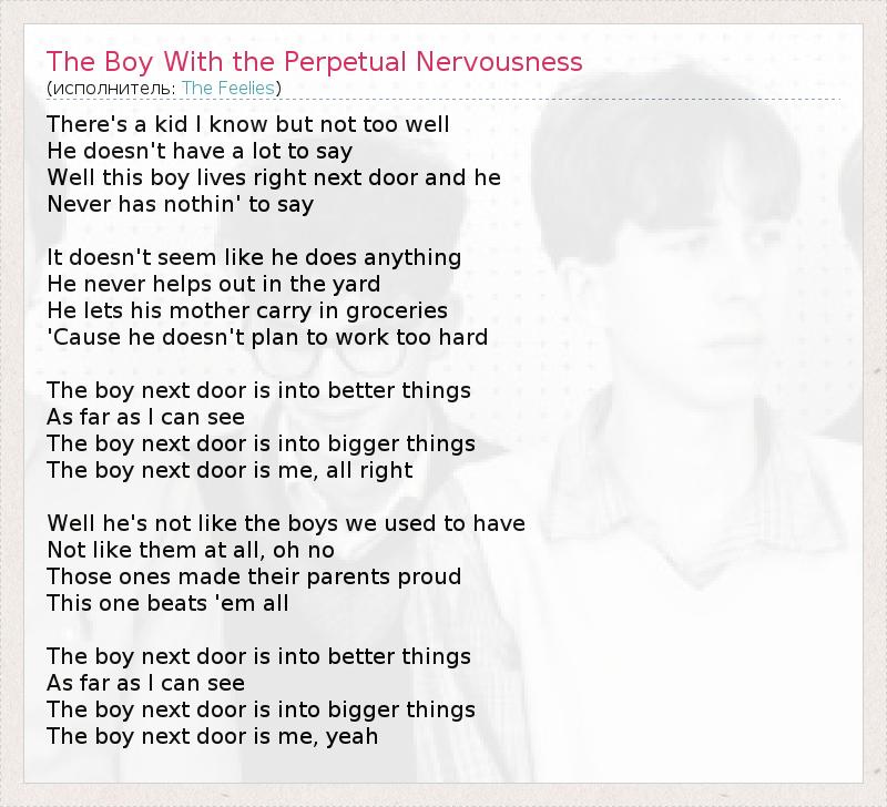 А как ты думаешь, о чем песня "The Boy With the Perpetual Nervousness" ?