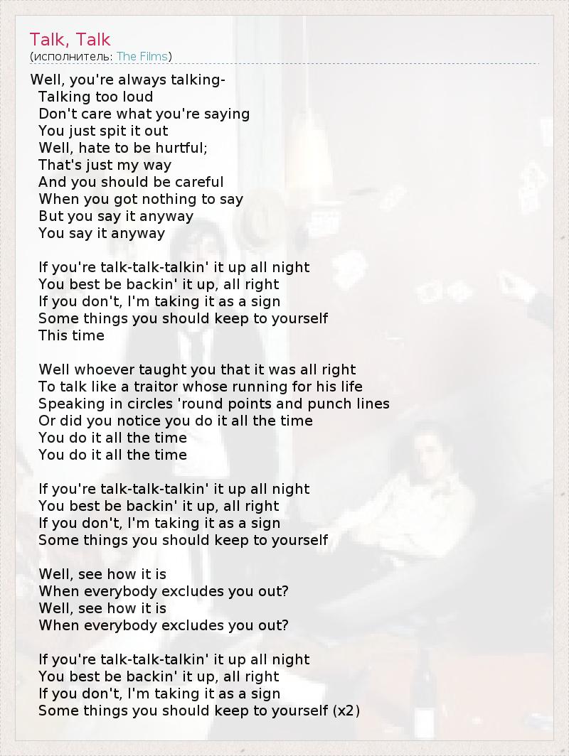 А как ты думаешь, о чем песня "Talk, Talk" ?