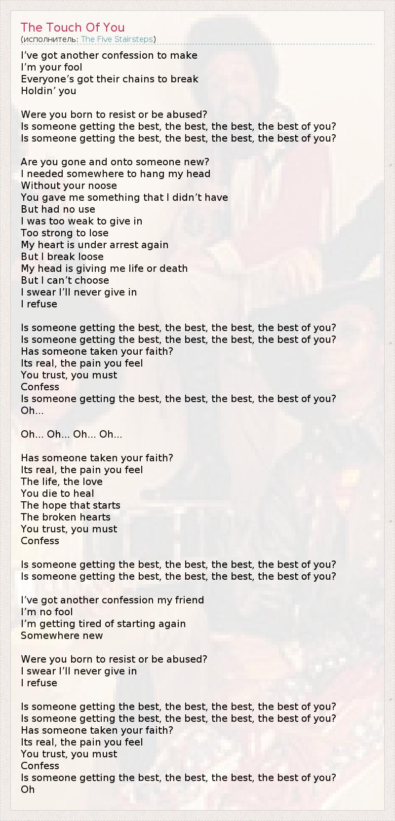 А как ты думаешь, о чем песня "The Touch Of You" ?