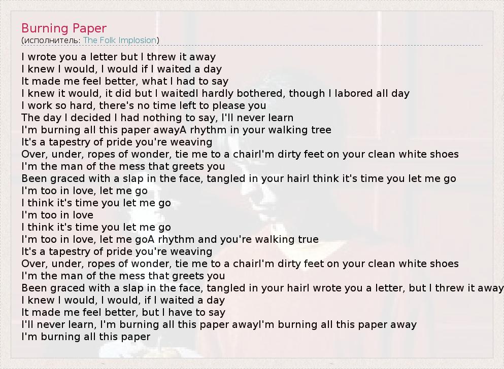 А как ты думаешь, о чем песня "Burning Paper" ?