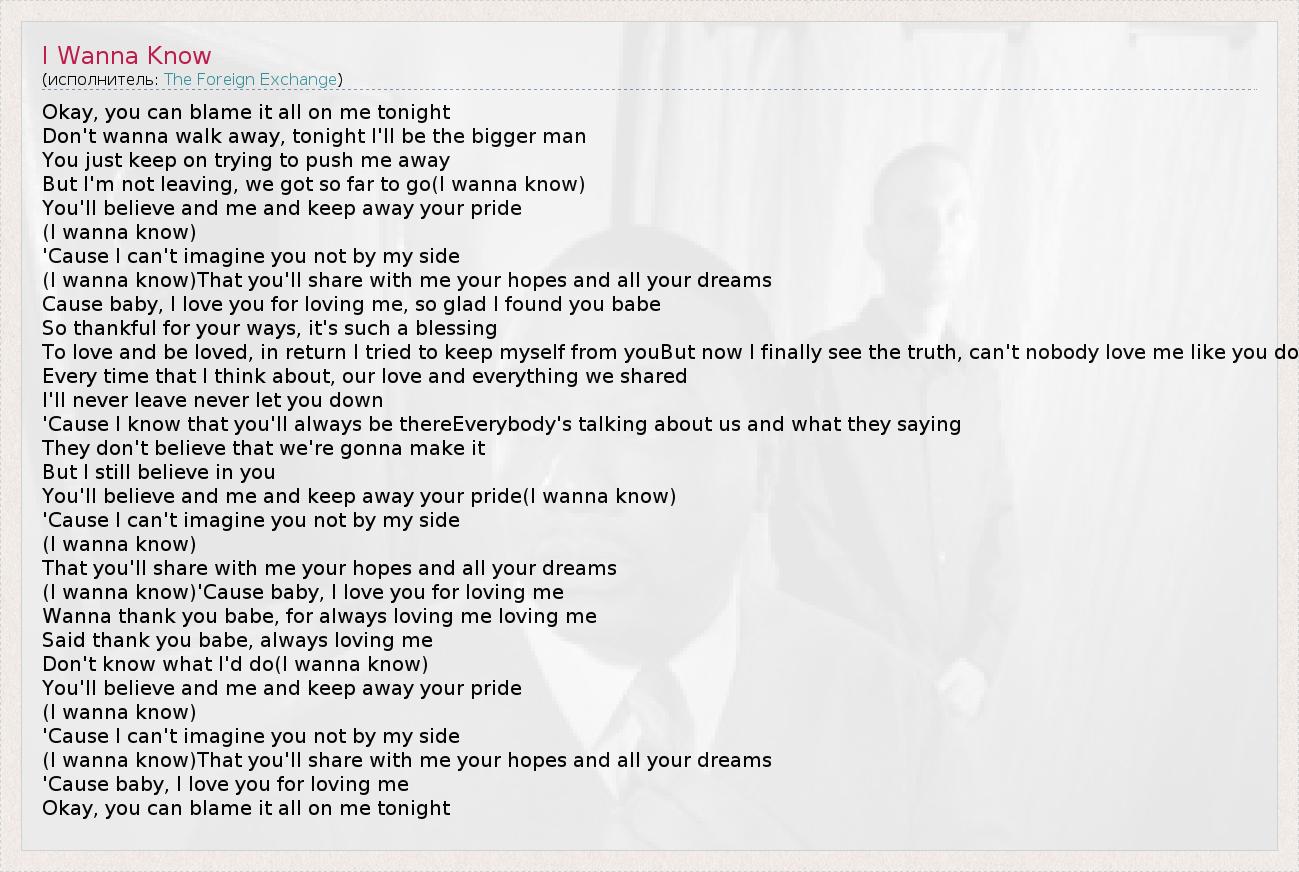 А как ты думаешь, о чем песня "I Wanna Know" ?
