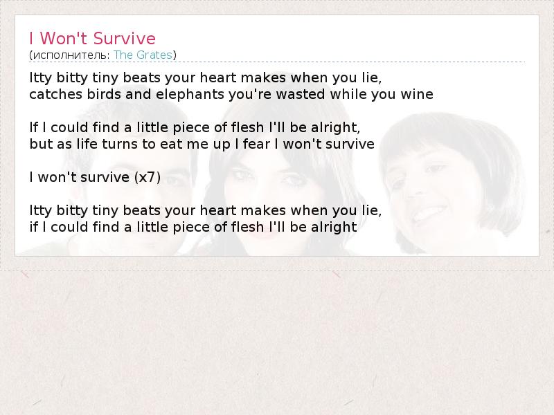А как ты думаешь, о чем песня "I Won't Survive" ?