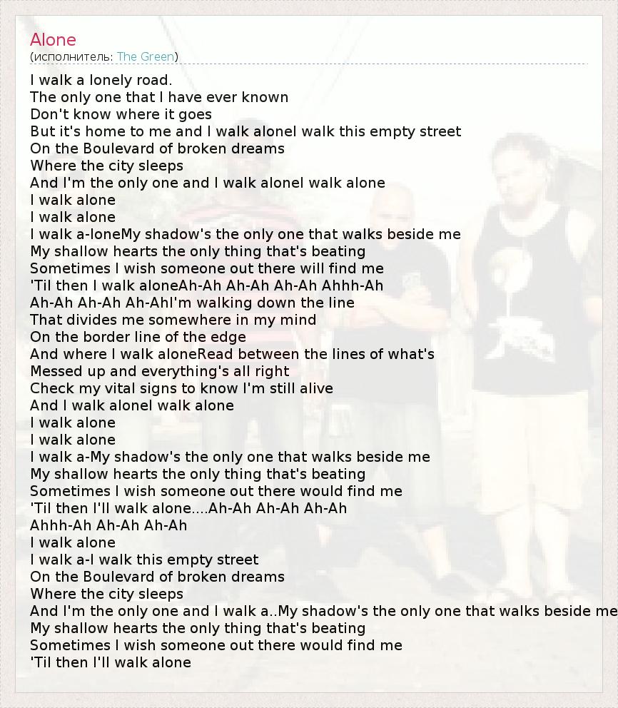 And I'm the only one and I walk a..My shadow's the only one that walks beside me