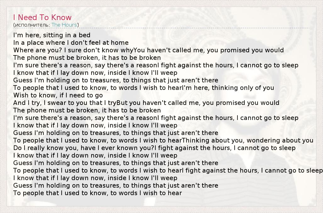 А как ты думаешь, о чем песня "I Need To Know" ?