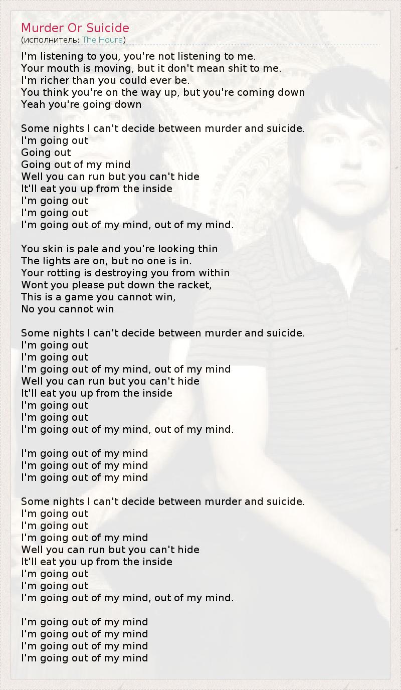 А как ты думаешь, о чем песня "Murder Or Suicide" ?