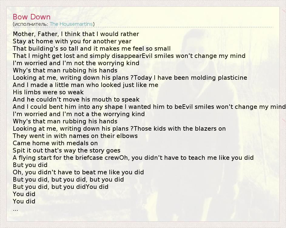 А как ты думаешь, о чем песня "Bow Down" ?