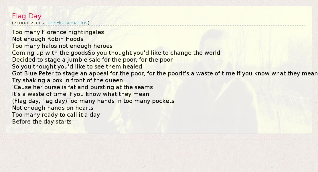 А как ты думаешь, о чем песня "Flag Day" ?