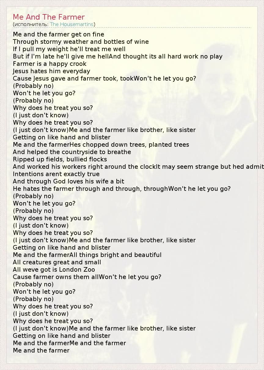 А как ты думаешь, о чем песня "Me And The Farmer" ?