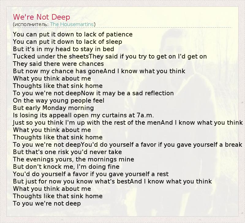 А как ты думаешь, о чем песня "We're Not Deep" ?