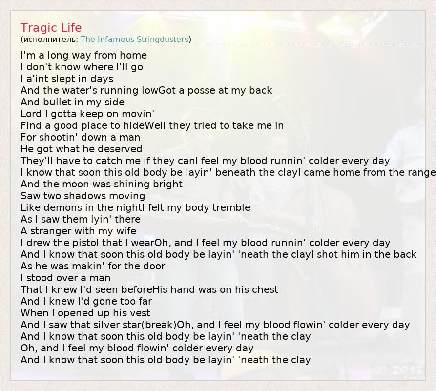 А как ты думаешь, о чем песня "Tragic Life" ?