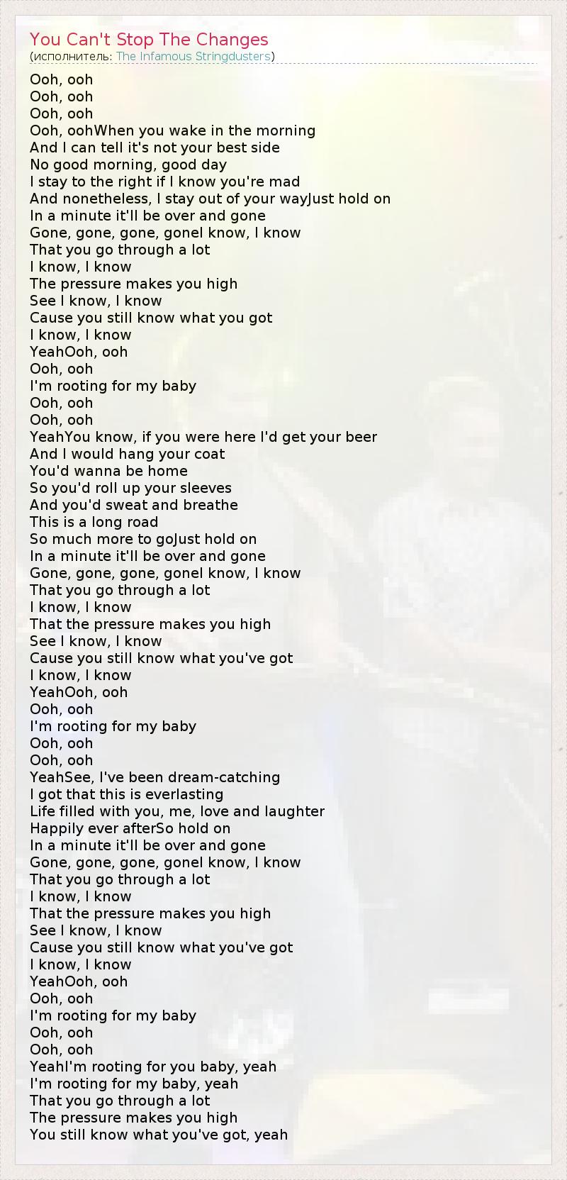 А как ты думаешь, о чем песня "You Can't Stop The Changes" ?