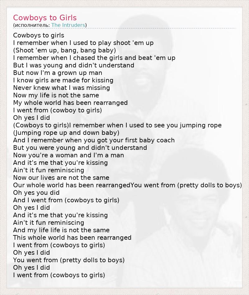 А как ты думаешь, о чем песня "Cowboys to Girls" ?