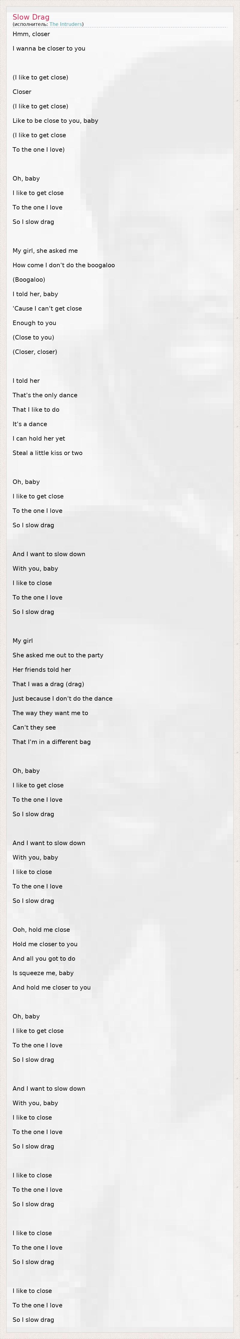 А как ты думаешь, о чем песня "Slow Drag" ?