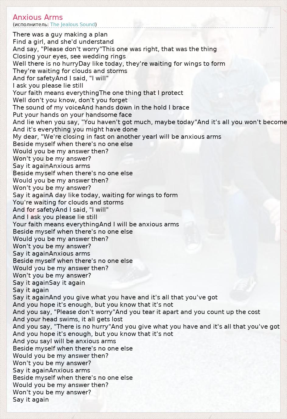 А как ты думаешь, о чем песня "Anxious Arms" ?