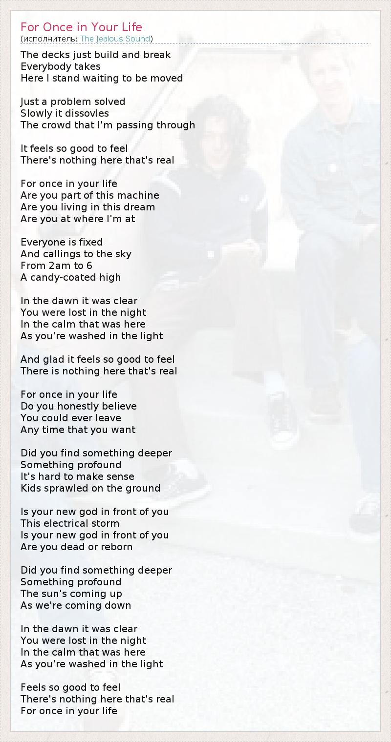 А как ты думаешь, о чем песня "For Once in Your Life" ?
