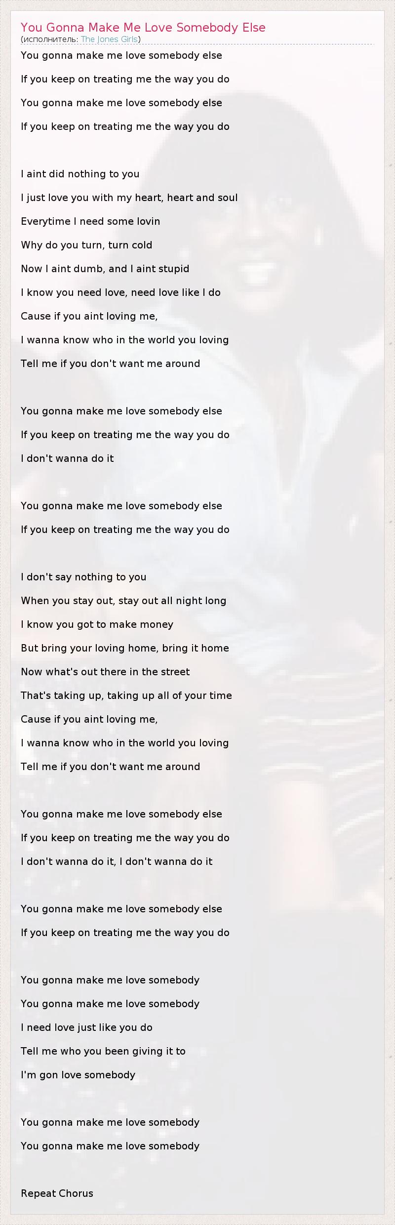 А как ты думаешь, о чем песня "You Gonna Make Me Love Somebody Else" ?