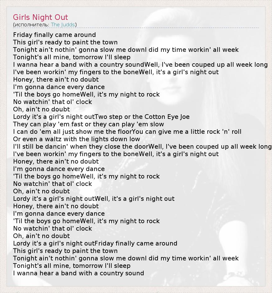 А как ты думаешь, о чем песня "Girls Night Out" ?