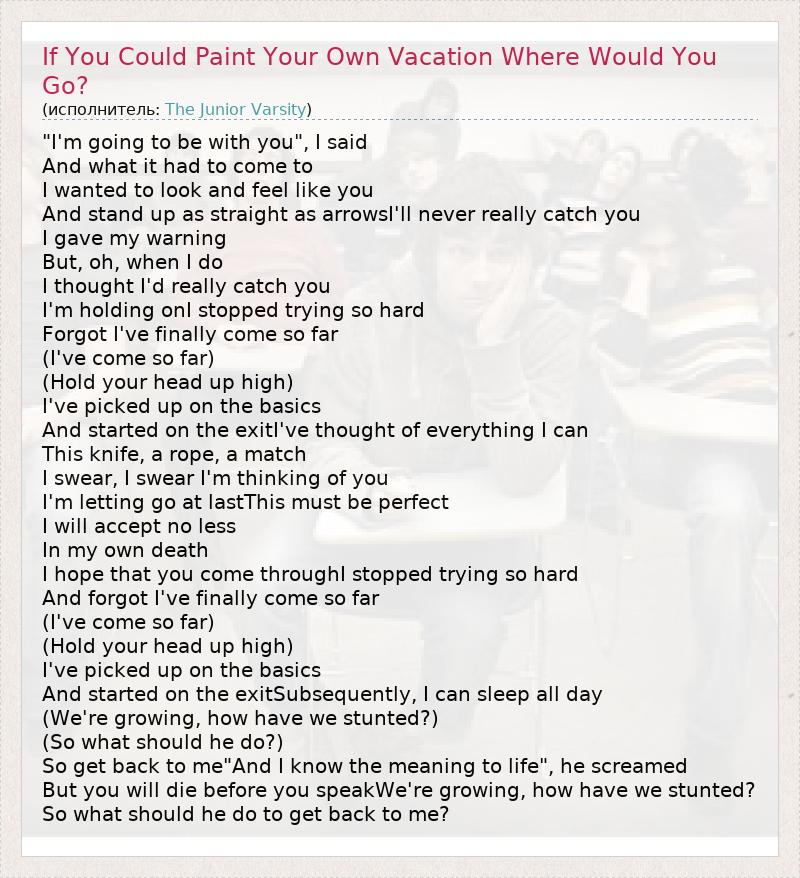 А как ты думаешь, о чем песня "If You Could Paint Your Own Vacation Where Would You Go?" ?