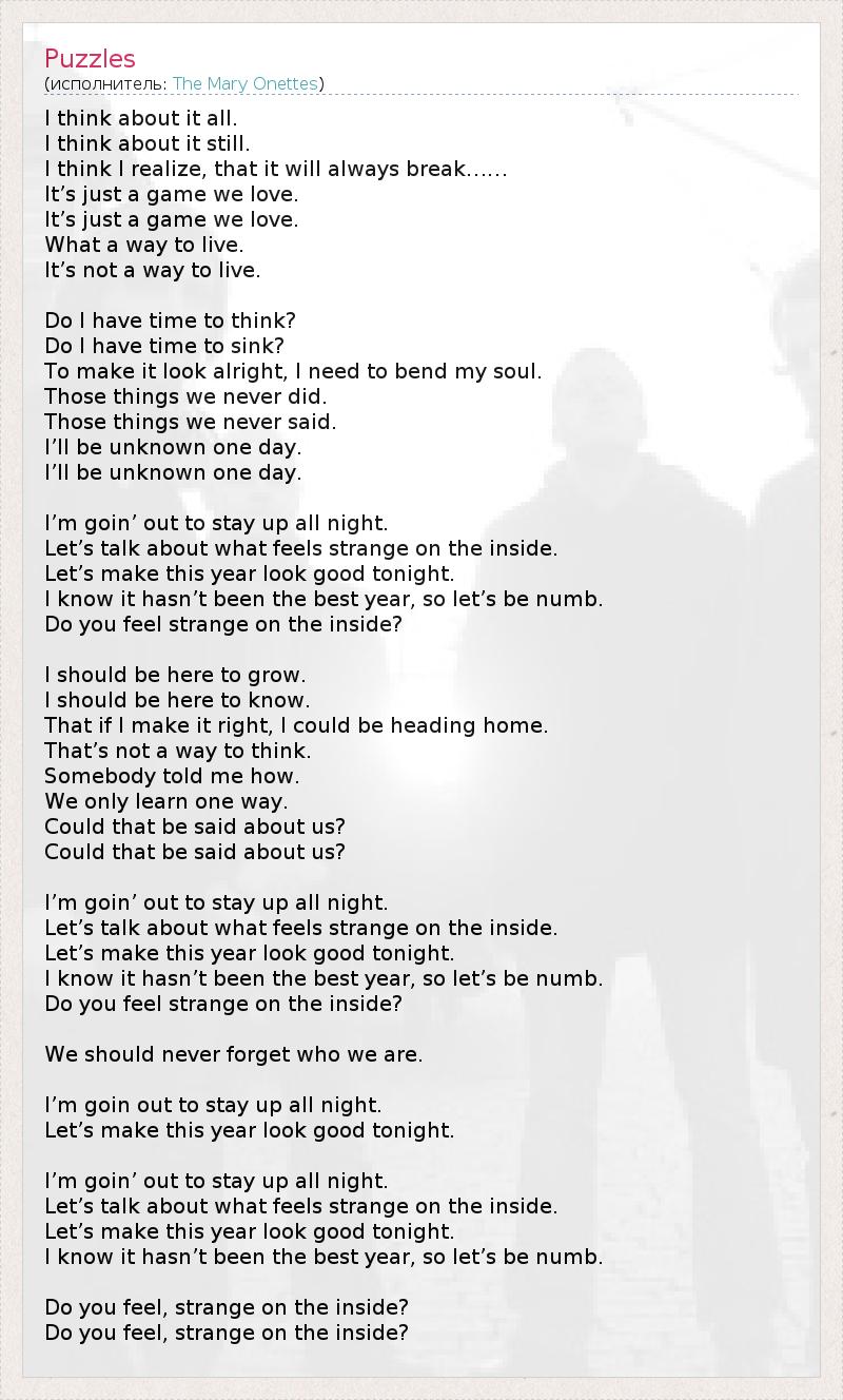 Это интересно:Jönköping, Sweden (2000 – present) The mary Onettes - это инди рок группа образованная в городе Jönköping, что в Швеции, в 2000 году. Вдохновлённые гитарным попом 80ых и группами играющими инди в 90ых, The Mary Onettes успешно выпустили EP на лейбле Sony/BMG до того пока они не были брошены лейблом. Их звучание сравнивается с Echo & The Bunnymen, The Church, The Smiths, The Cure и The Jesus and Mary Chain.Вскоре они были подхвачены Шведским звукозаписывающим... продолжение