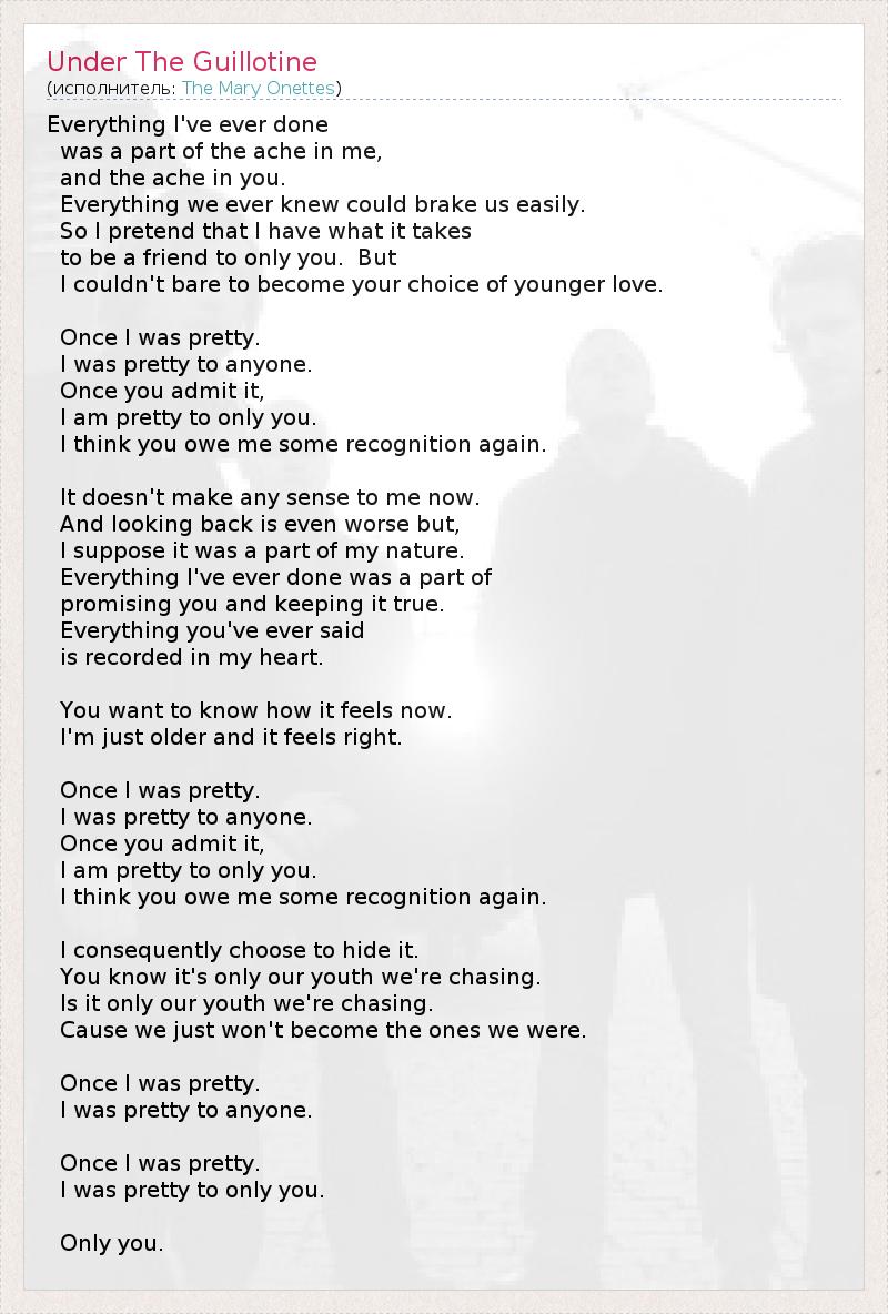 А как ты думаешь, о чем песня "Under The Guillotine" ?