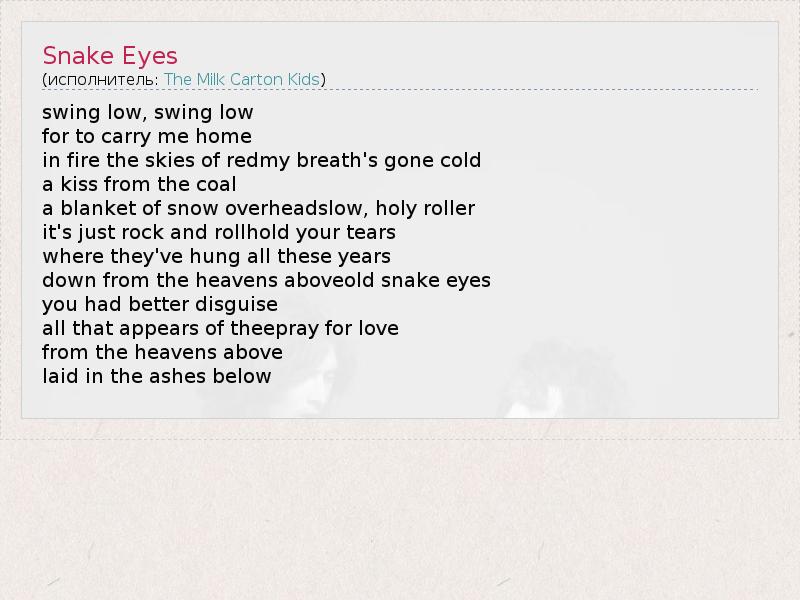 А как ты думаешь, о чем песня "Snake Eyes" ?
