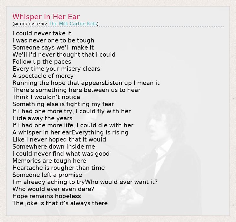 А как ты думаешь, о чем песня "Whisper In Her Ear" ?
