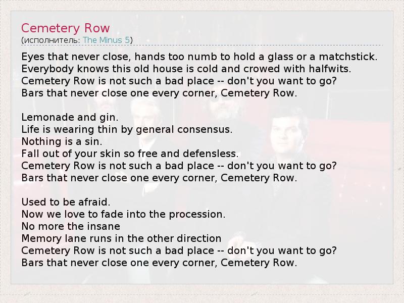 А как ты думаешь, о чем песня "Cemetery Row" ?