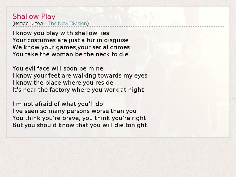 А как ты думаешь, о чем песня "Shallow Play" ?