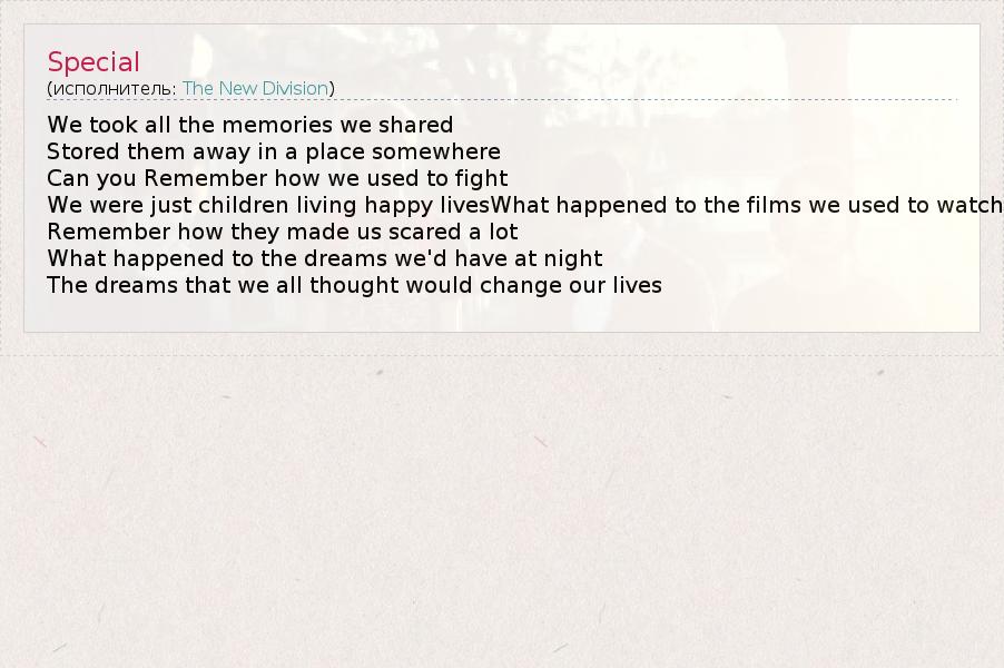 Это интересно:The New Division – группа из г. Риверсайд, Калифорния, США, играющая в стилях synthpop / electropop / new wave. На участников группы повлияла музыка таких команд, как New Order, Joy Division (о чём свидетельствует название), а также Depeche Mode и многих других исполнителей. 27 сентября 2011 года выпущен дебютный альбом группы под названием "Shadows". Многие издания назвали этот альбом лучшим в 2011 году. Релиз второго студийного... продолжение