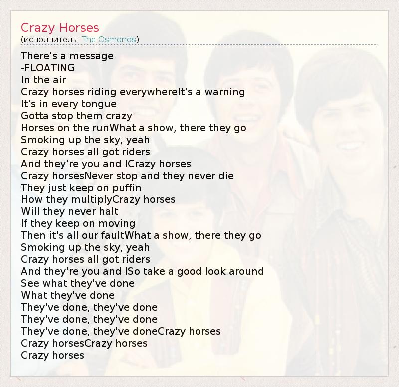 А как ты думаешь, о чем песня "Crazy Horses" ?