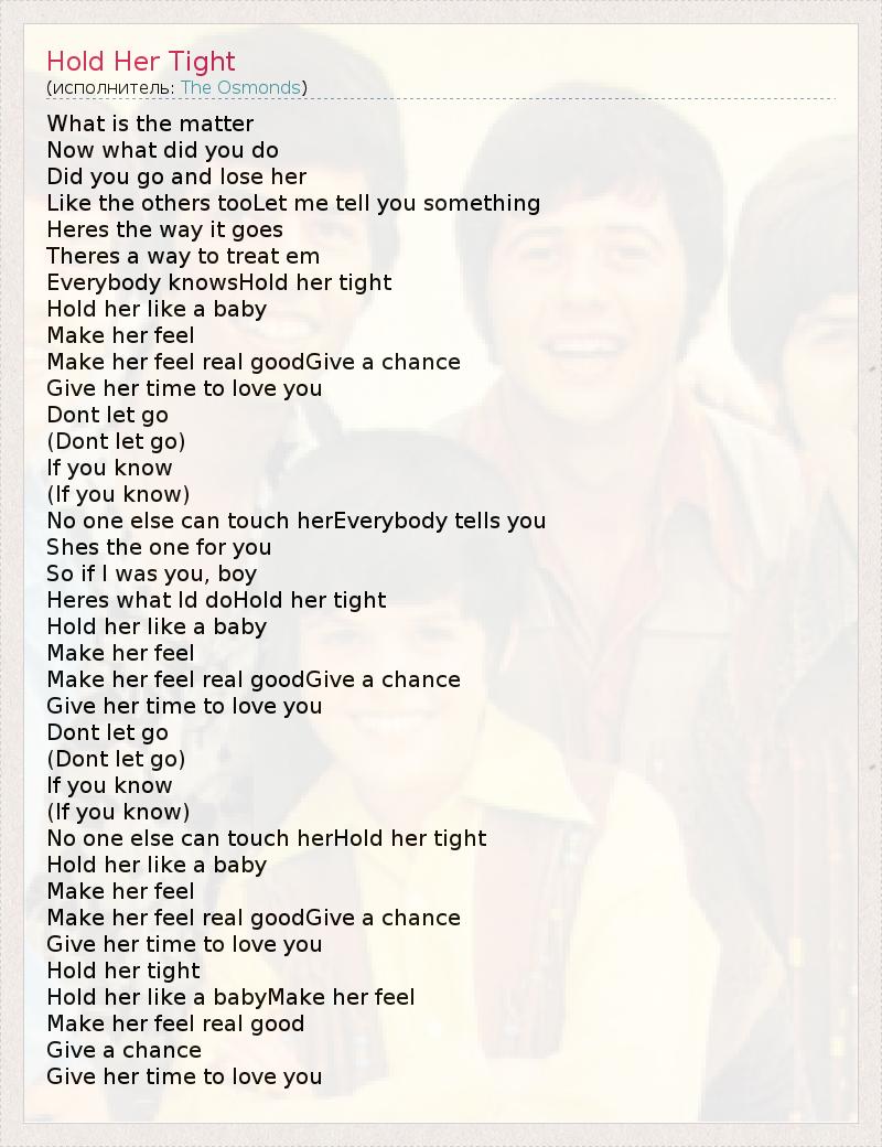 А как ты думаешь, о чем песня "Hold Her Tight" ?
