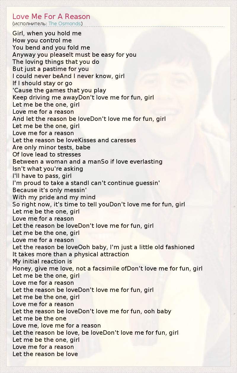 А как ты думаешь, о чем песня "Love Me For A Reason" ?