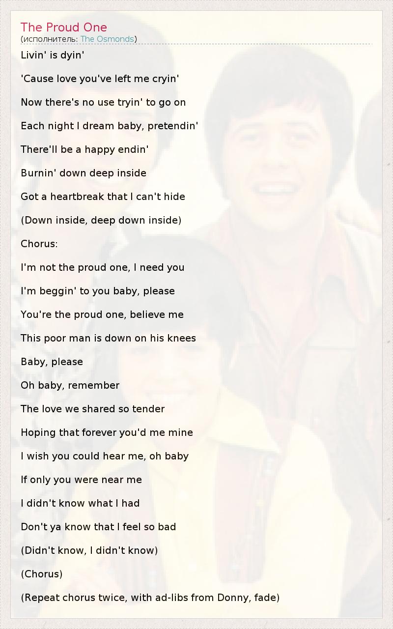 А как ты думаешь, о чем песня "The Proud One" ?