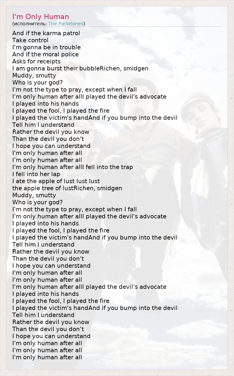 А как ты думаешь, о чем песня "I'm Only Human" ?