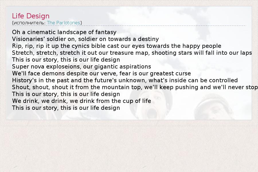 Это интересно:The Parlotones - это четверка белых африканских ребят, музыка которых звучит так, словно они взросли не на прериях Южной Африки, а где-то по соседству с The Killers в Гринвич Виллидж. Несмотря на влияние все тех же The Killers, у группы есть свой фирменный стиль, который грозит со временем затмить ранних героев инди-рока. The Parlotones начали свою карьеру в 2006, играя в ночных клубах при пяти, шести зрителях,... продолжение
