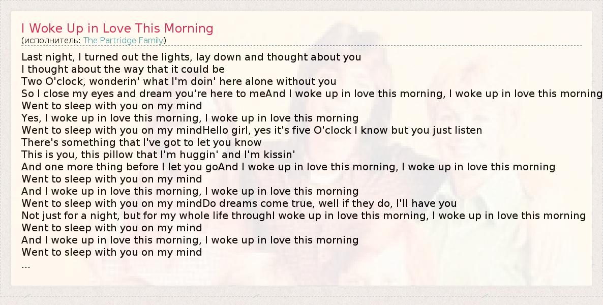 А как ты думаешь, о чем песня "I Woke Up in Love This Morning" ?