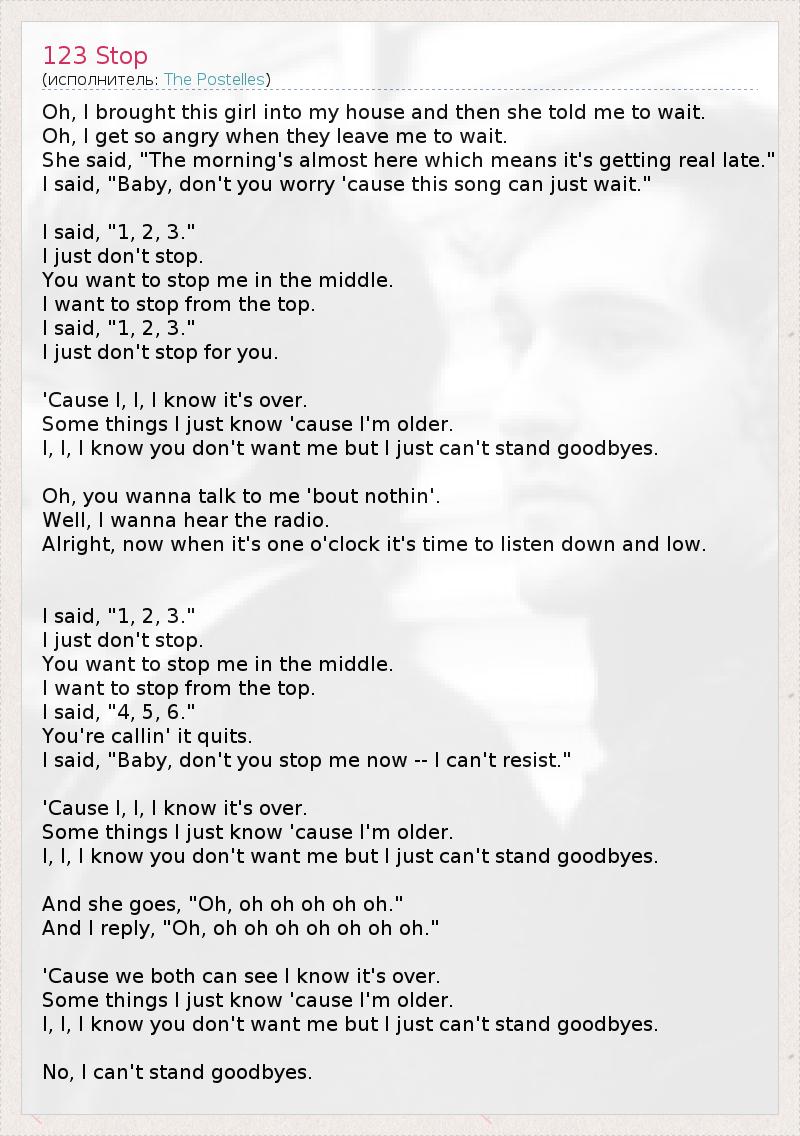А как ты думаешь, о чем песня "123 Stop" ?