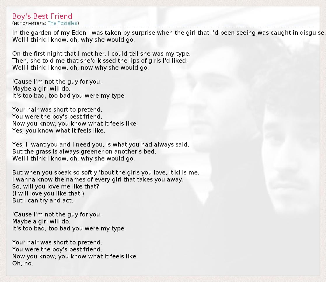 А как ты думаешь, о чем песня "Boy's Best Friend" ?