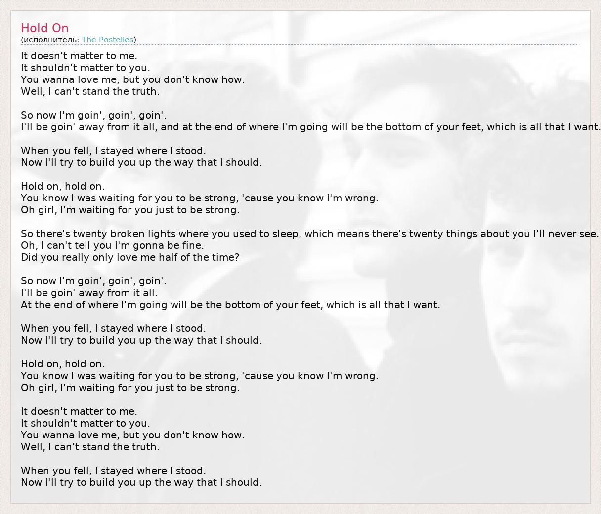 You know I was waiting for you to be strong, 'cause you know I'm wrong.