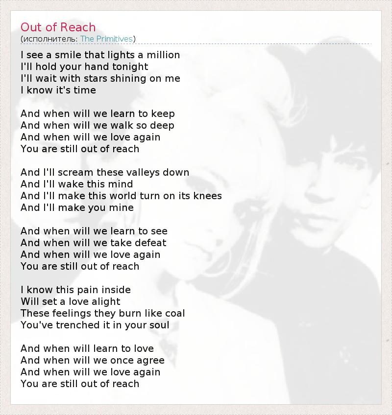 А как ты думаешь, о чем песня "Out of Reach" ?