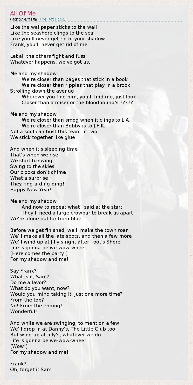 Это интересно:Крысиная стая (Rat Pack) — команда деятелей американского шоу-бизнеса 1950-х и 1960-х, которая группировалась вокруг Хамфри Богарта и его супруги Лорин Бэколл. В начале 1960-х гг. лидеры крысиной стаи — Фрэнк Синатра, Дин Мартин, Сэмми Дэвис — часто выступали в клубах Лас-Вегаса и на телевидении с импровизированными комическими и музыкальными номерами.С лёгкой руки Лорин Бэколл «крысиной стаей»... продолжение