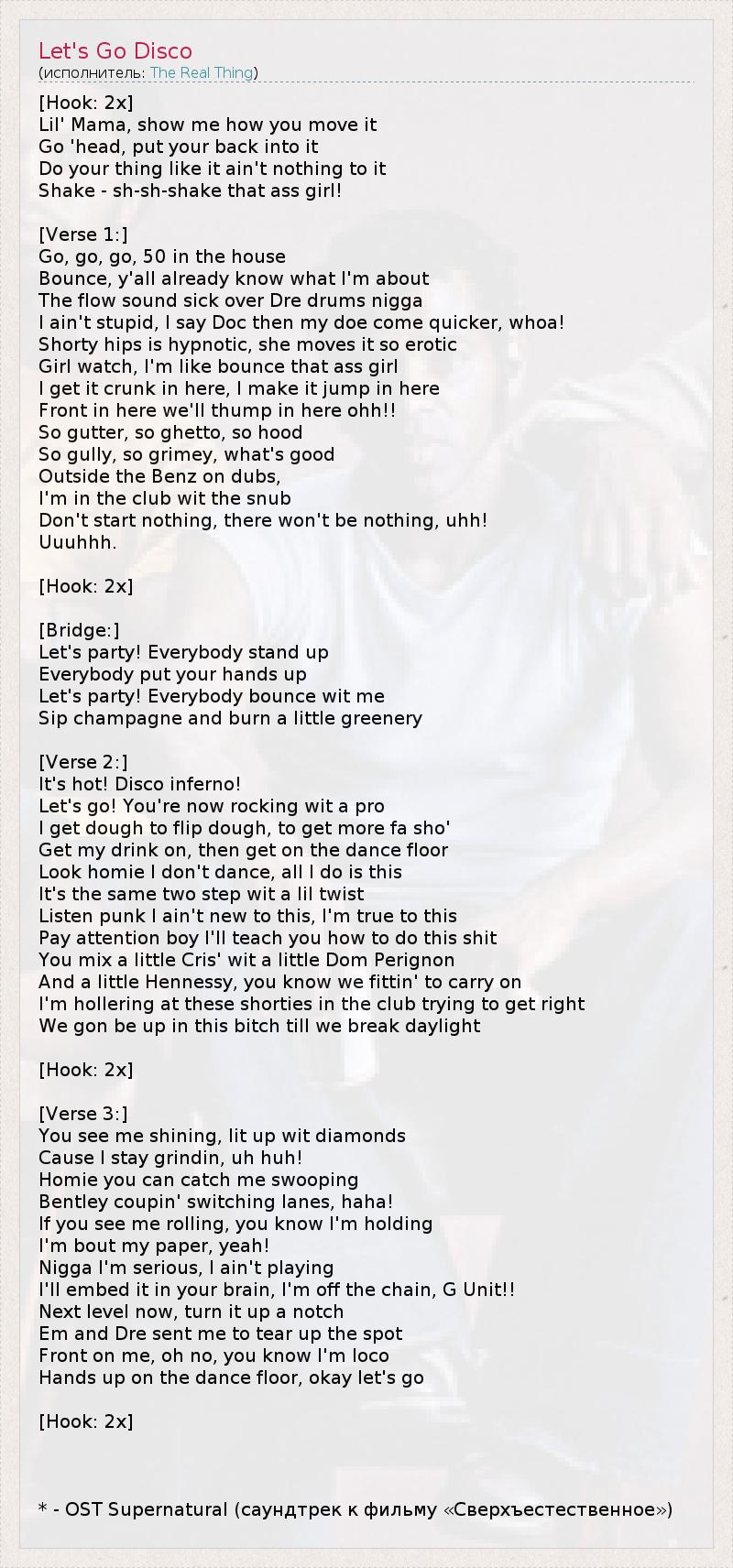А как ты думаешь, о чем песня "Let's Go Disco" ?