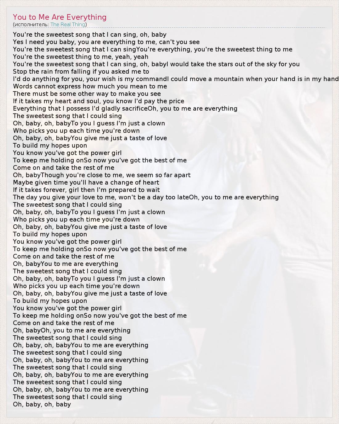 You're the sweetest song that I can singYou're everything, you're the sweetest thing to me