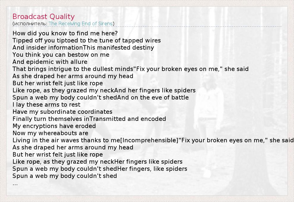 А как ты думаешь, о чем песня "Broadcast Quality" ?