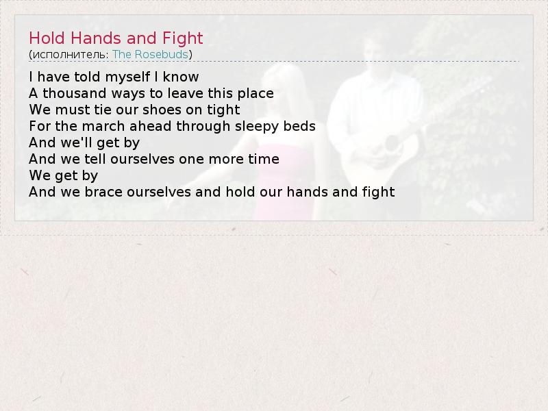 А как ты думаешь, о чем песня "Hold Hands and Fight" ?