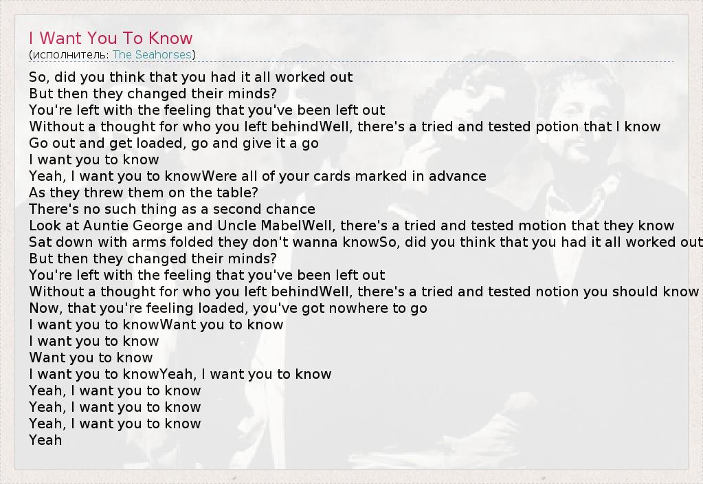 А как ты думаешь, о чем песня "I Want You To Know" ?