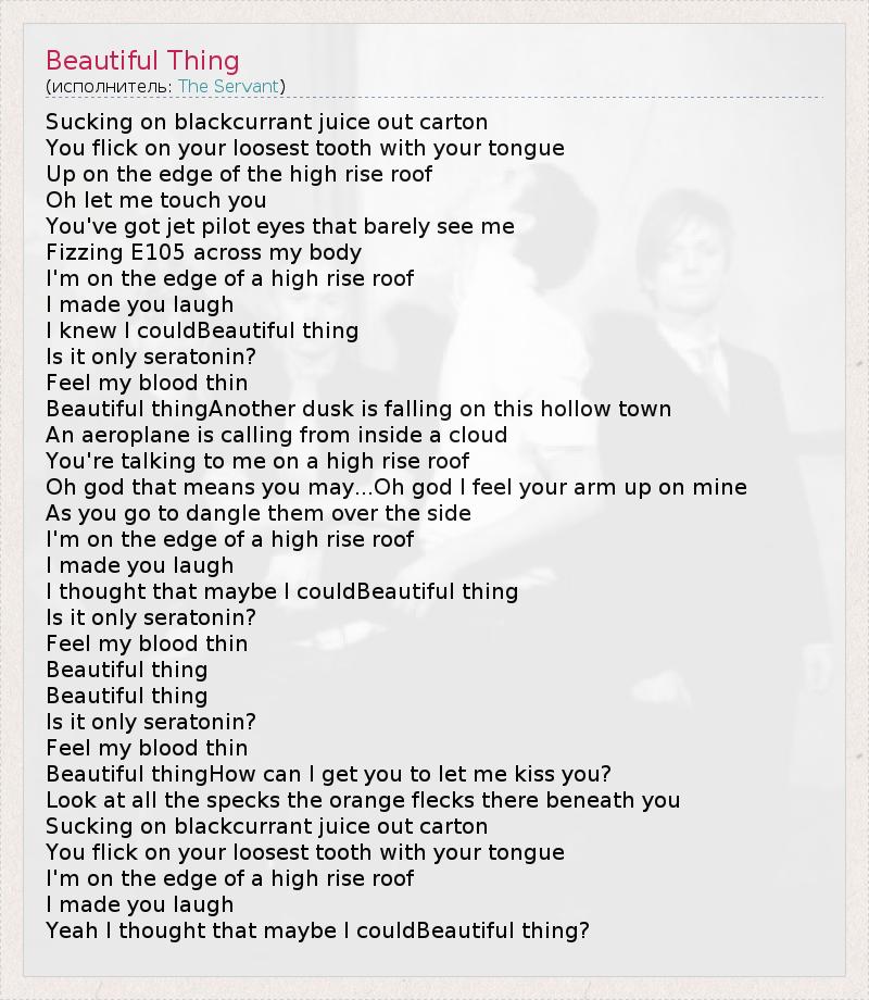 А как ты думаешь, о чем песня "Beautiful Thing" ?