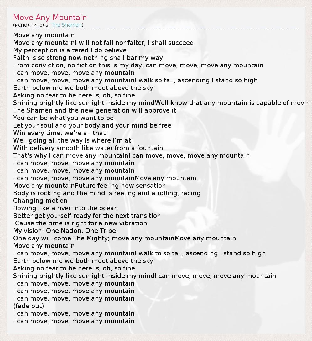 А как ты думаешь, о чем песня "Move Any Mountain" ?