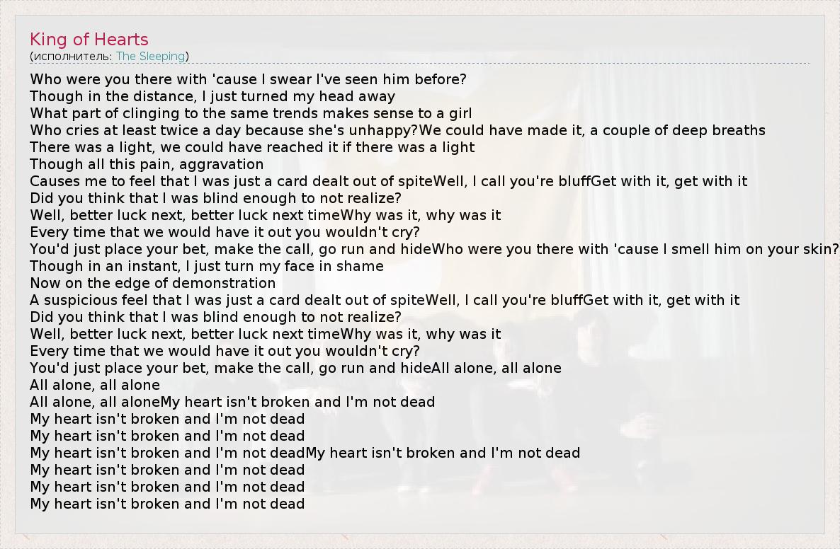 А как ты думаешь, о чем песня "King of Hearts" ?