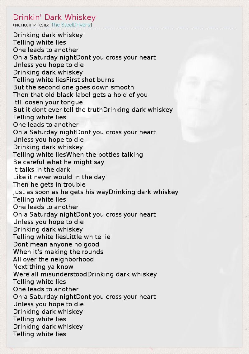 А как ты думаешь, о чем песня "Drinkin' Dark Whiskey" ?